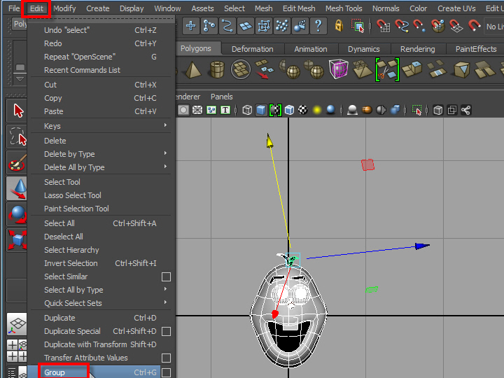 1. 顔のすべてのパーツをセレクトし、一つのグループに束ねてみます。