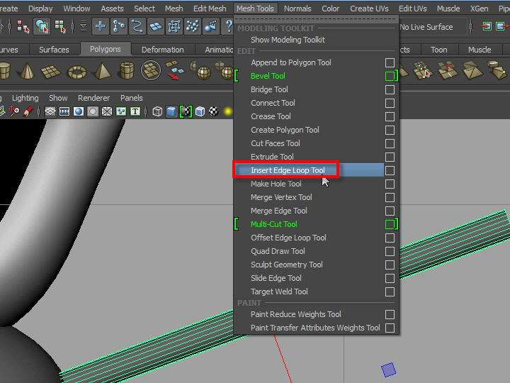 10. 腕の中心辺りにもう一つ エッジループを追加します。