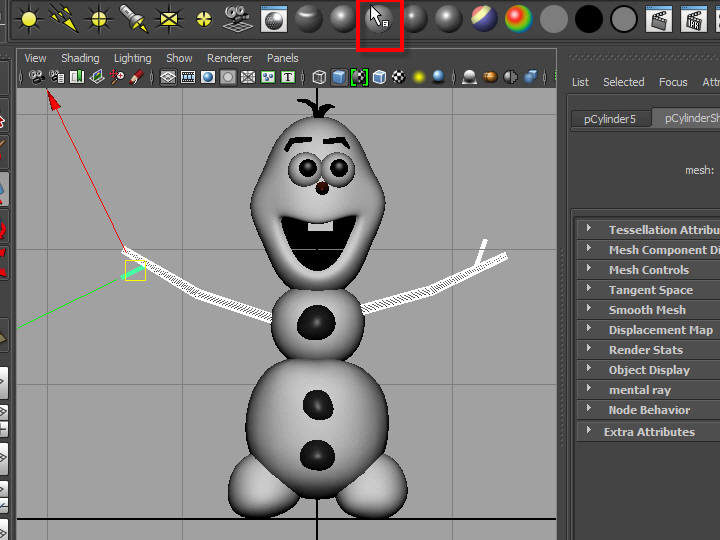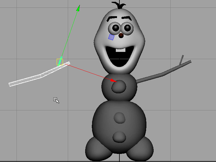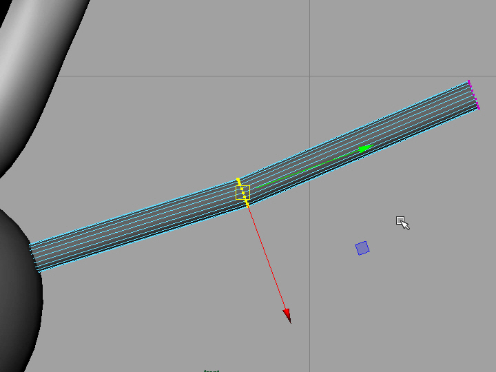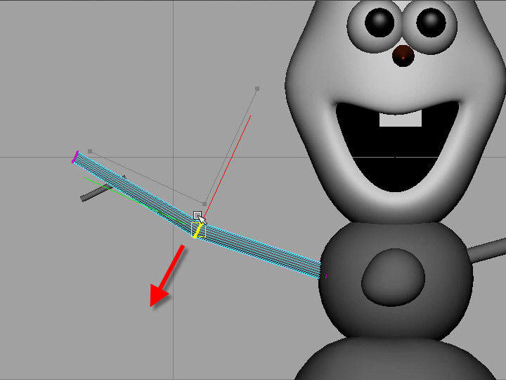 12. 図のようにバーテックスを移動し、関節の部分を少し曲げます。