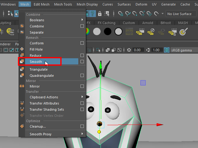 顔のポリゴン数が少ないので、分割してポリゴン数を上げてみます。