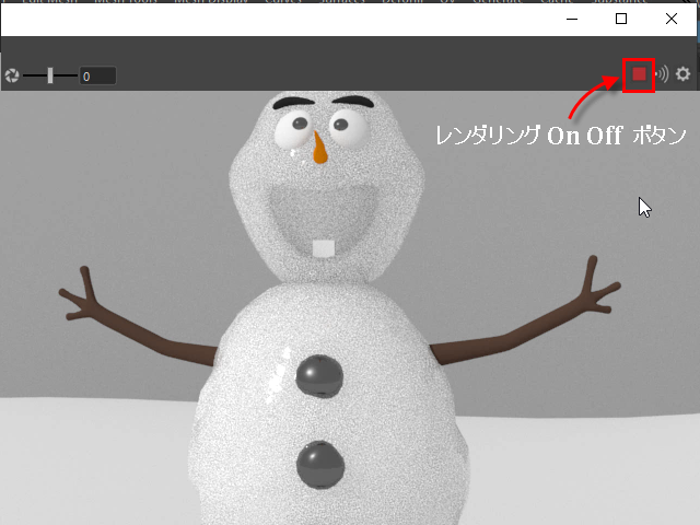 レンダリング ウィンドウの右上にあるボタンでレンダリングを止めたり、開始したりすることができます。