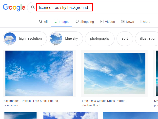 Google で空の画像を見つけます。