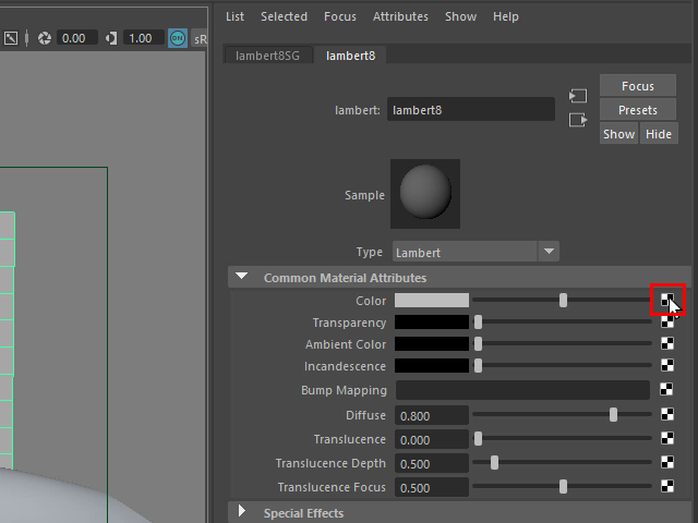 まずバックグラウンドのプレーンをセレクトし、新たに Lambert をアサインします。