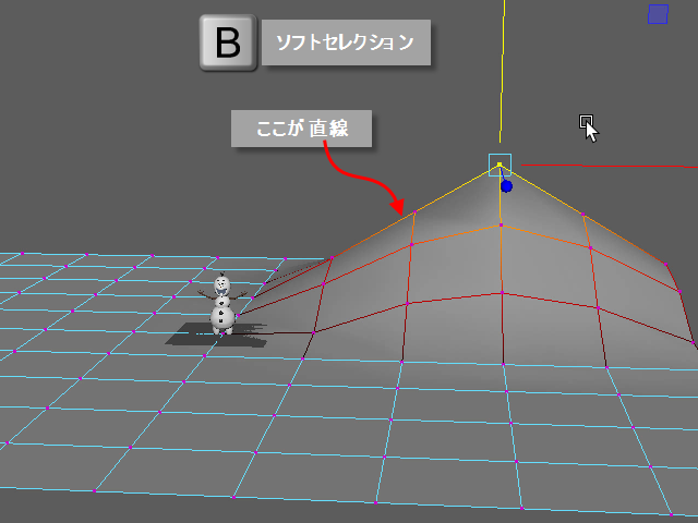 キーボード B のソフトセレクションで移動した時に、このように直線になる場合は、