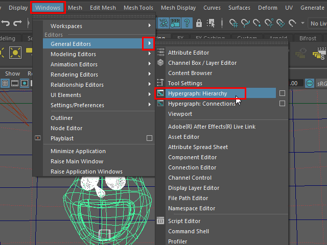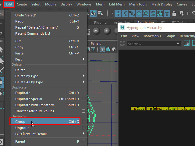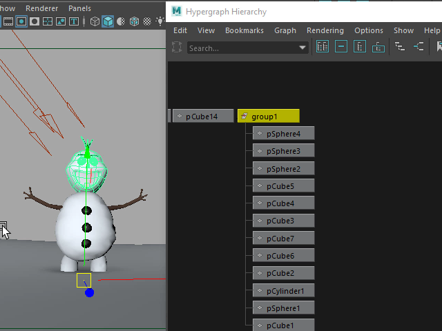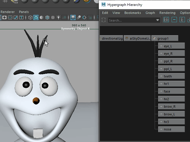 右のチャンネルボックスで各パーツの名前を変えることができます。