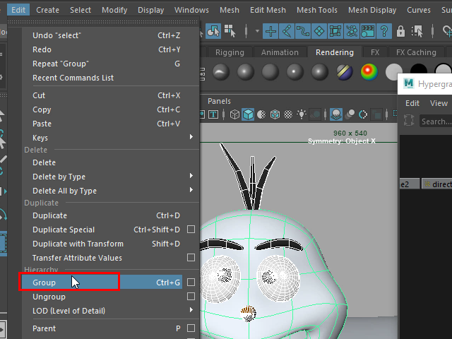 顔のパーツをすべてグループ化してみます。ます顔のパーツをすべて選択します。