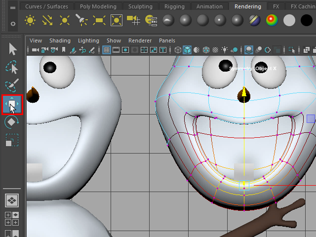 図のように頭部をセレクトし、次に軸を首のあたりに移動します。