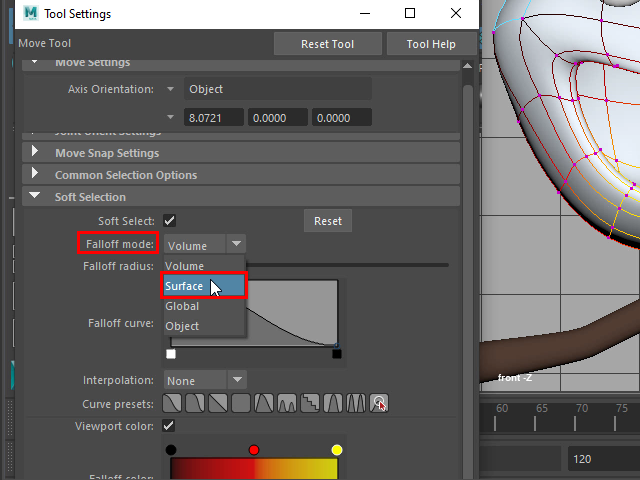 Falloff mode からSurface を選択します。