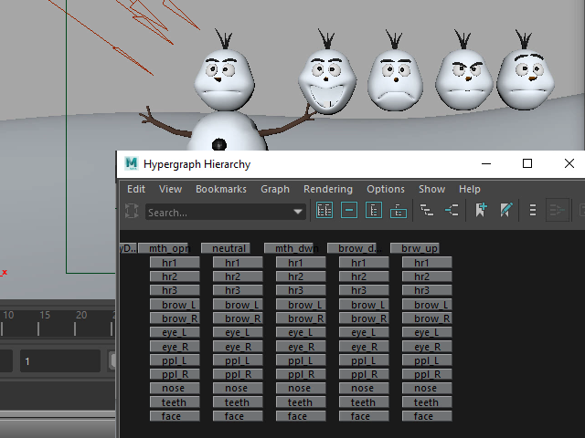 まゆ毛の形と口の形は別々に分けてつくり、あとでブレンドシェイプでミックスします。