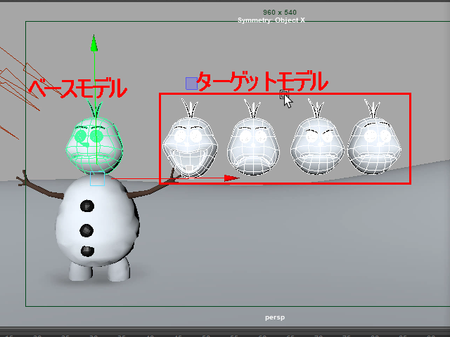 まずターゲットモデルをセレクトします。セレクトするときは一番上のグループノードだけをセレクトします。
