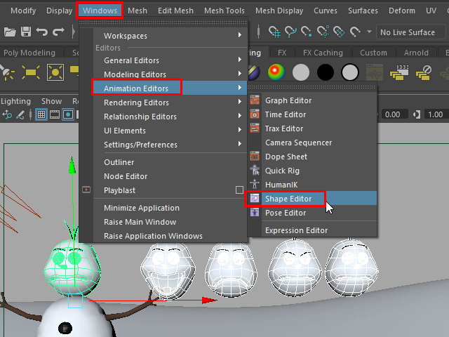 ブレンドシェイプのコントローラーは Shape Editor にあります。