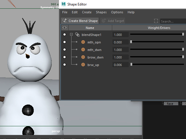 一番上のスライダー blendshape1 はタッチせず、そのままの状態にします。