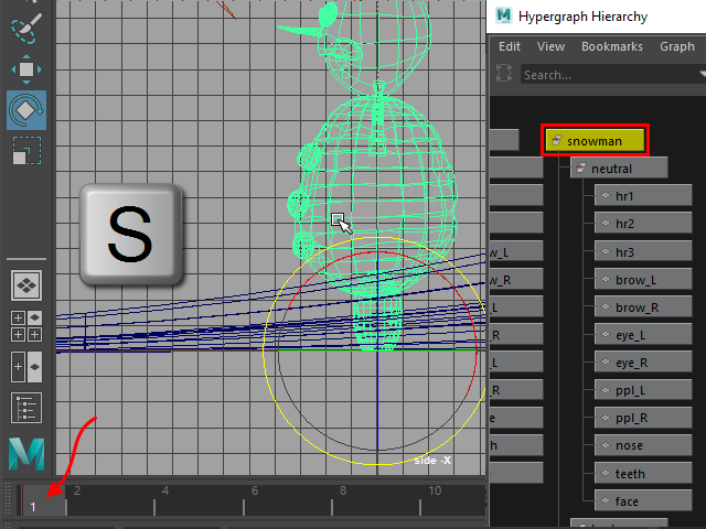 次に雪だるま全体(一番上のグループノード)をセレクトし、