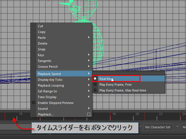 まずマウス右ボタンでタイムスライダーをクリックし、メニューをオープンします。