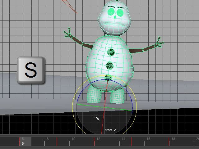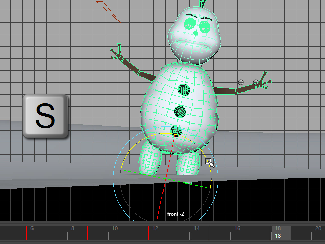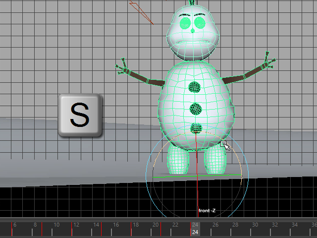 24 フレーム目で歩行は終わりますが、ボデイーを図のように少しだけ回転させ、キーを入れます。