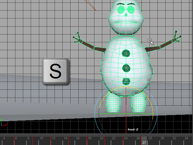 27 フレーム目でボディーをまっすぐにし、キーを入れます。