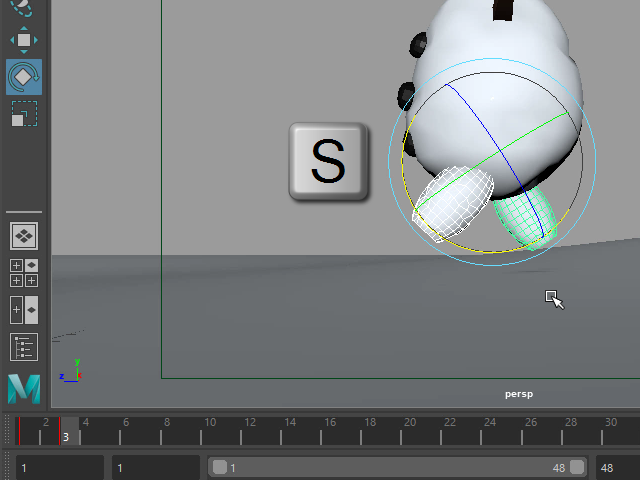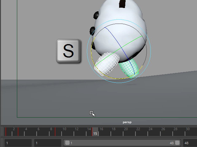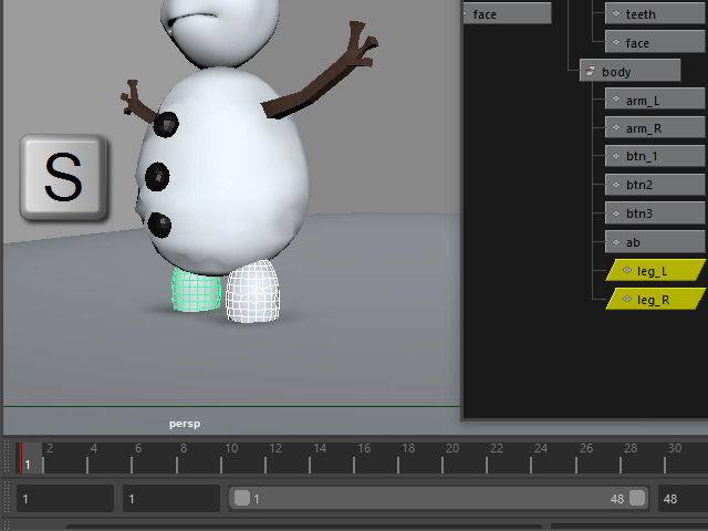 まず両脚をセレクトし、1 フレーム目にキーを入れます。