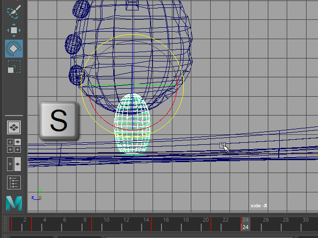 24フレーム目で脚をもとに戻し、キーを入れます。
