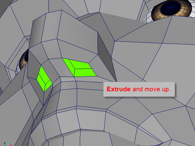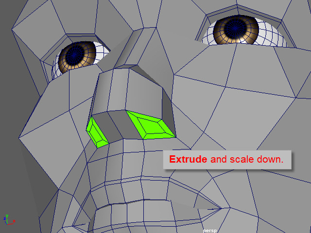 さらに Extrude して奥に移動し、鼻の穴を制作します。