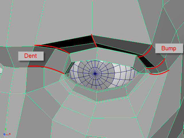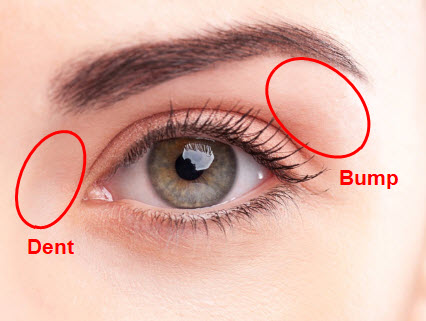 このように目頭の部分はくぼんでいますが、目じりの部分は盛り上がっているのが一般的です。