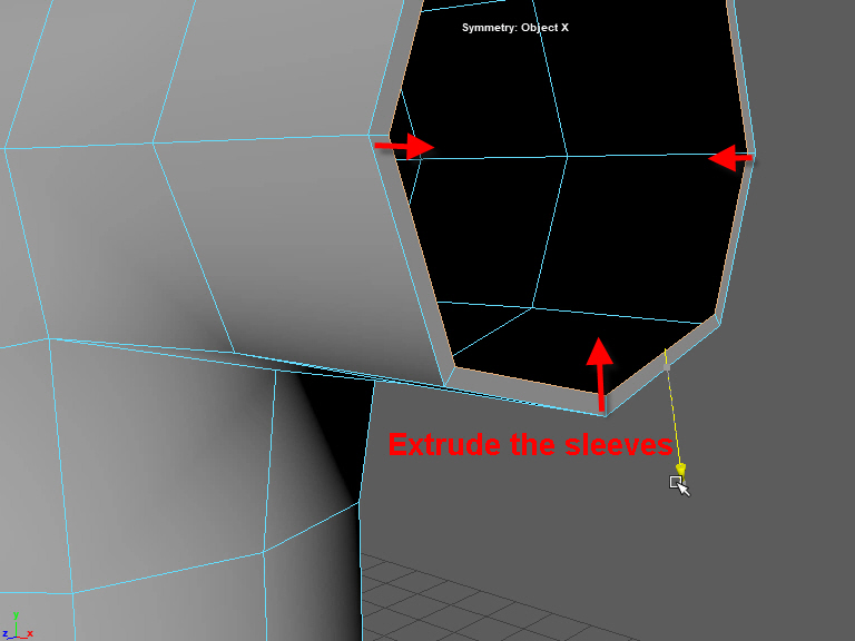 同様にシャツの下の部分も Extrude し、厚みを付けます。