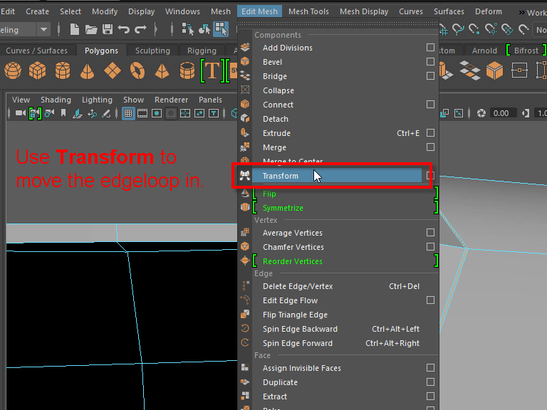 この場合は、シンプルな丸い形なので、Edit Mesh > Transform を使わず、スケールでも上手く移動することができます。