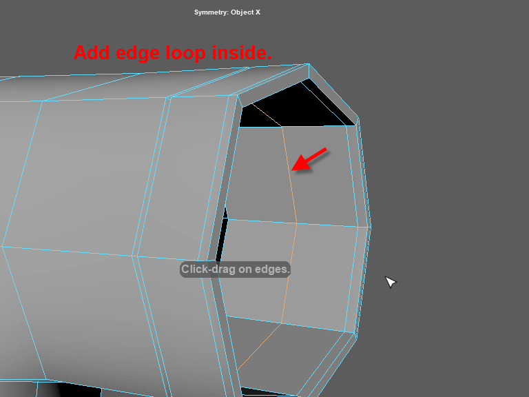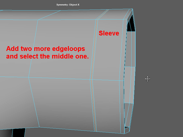 袖の外側と内側のエッジの数を合わせるために、内側に一本エッジループを追加します。