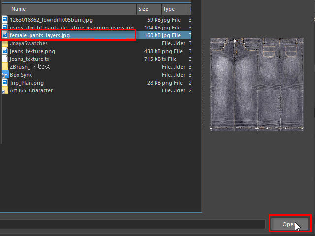 Select the jeans texture and Open.