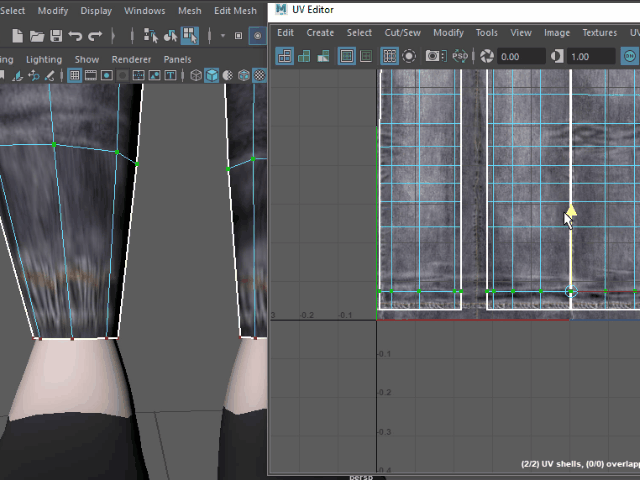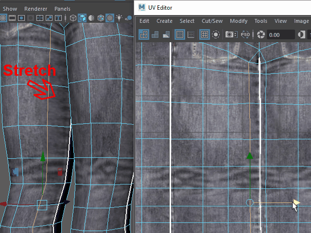 裾の縫い目がストレッチしている場合は、このように UV ポイントを移動し、修正します。