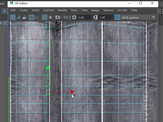 縦の縫い目に合わせて UV ポイントを移動します。