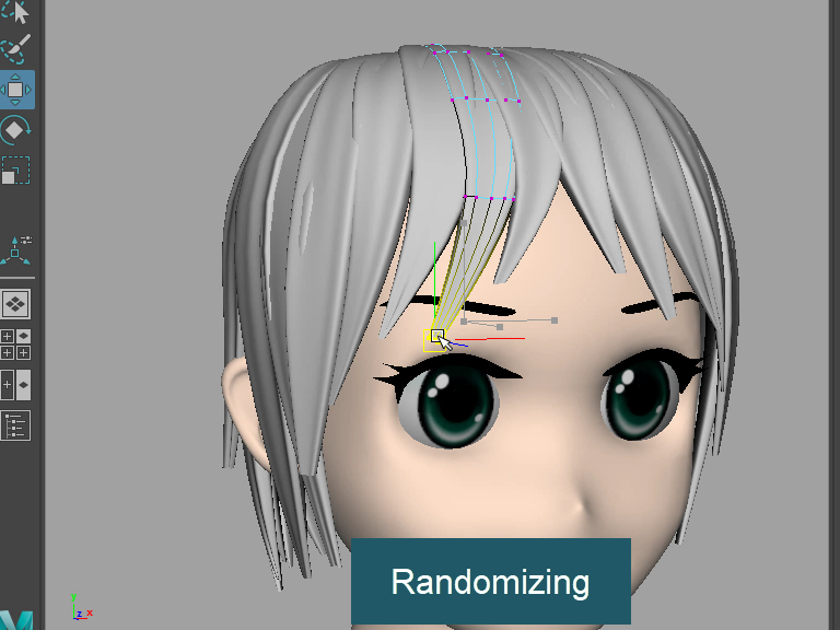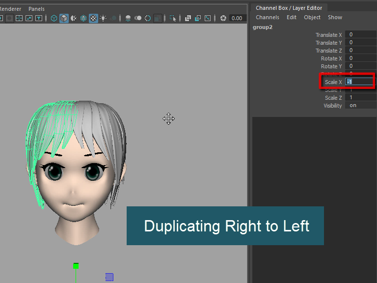 Group the right side hairs and duplicate. 画面右側の髪をグループ化し、複製します。