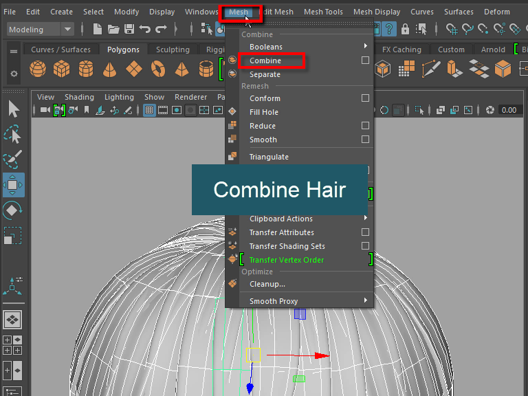 Combineされた髪を元のばらばらに戻すには Separate で。