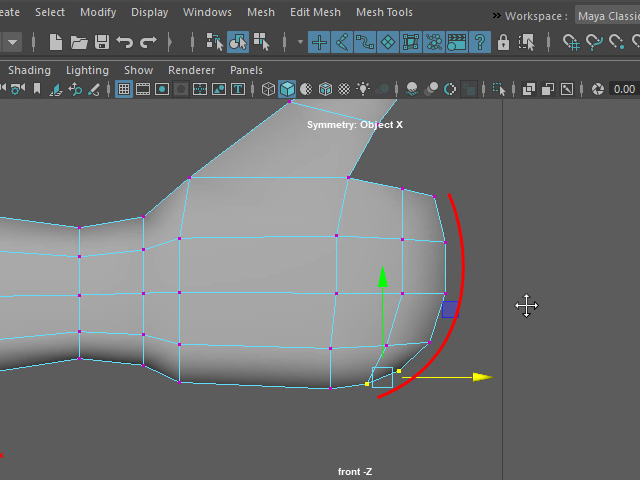 バーテックスを移動し、指の付け根の部分のカブーを作成します。