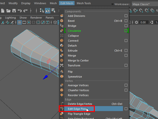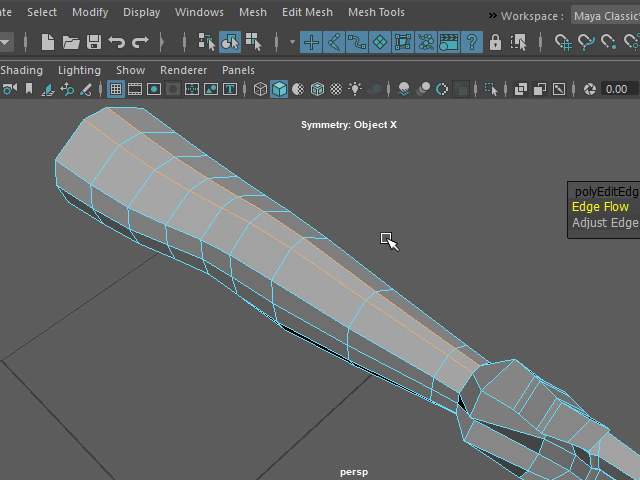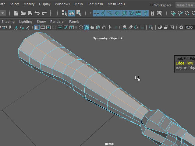 セレクトされたエッジのエッジフローを修正し、均一な間隔にしてみます。