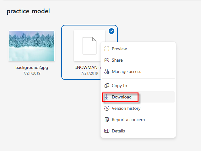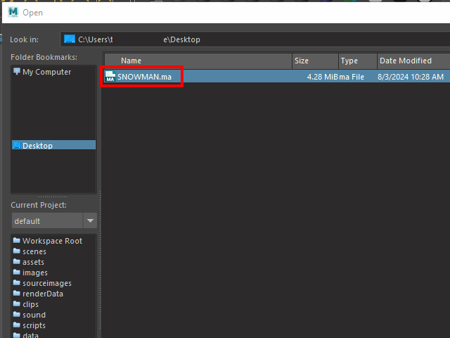 まず、Maya ファイル (SNOWMAN.ma) と画像 (background.jpg) をダウンロードします。