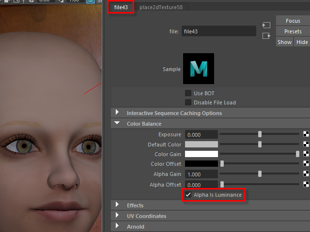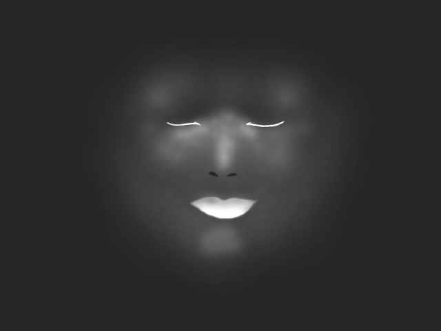 9. Coat Map コートマップ 1. ![]() Make a coat map like this. The lips and the lower eyelid lines are white. Make sure the nostril is painted black. The background is not totally black. It has a little gray in it. このような Coat マップを制作します。 唇と下のまぶたのラインを白く塗ります。 鼻の穴は黒く塗り潰します。 バックグラウンドは黒ではなく少しグレーが入っています。 2. ![]() Adjust values. バリューを調整します。 3. ![]() Apply a coat map on Weight. Coat マップは Weight に張り付けます。 4. 5. ![]() 6. ![]() Turn on Alpha is Luminance. Alpha is Luminance をオンにします。 7. ![]() If the specular from the AreaLight is too strong, scale up the AreaLight. This is one of way to adjust specular. バックからのAreaLight のSpecular が強い場合は、スケールを大きくして抑える方法もあります。 8.