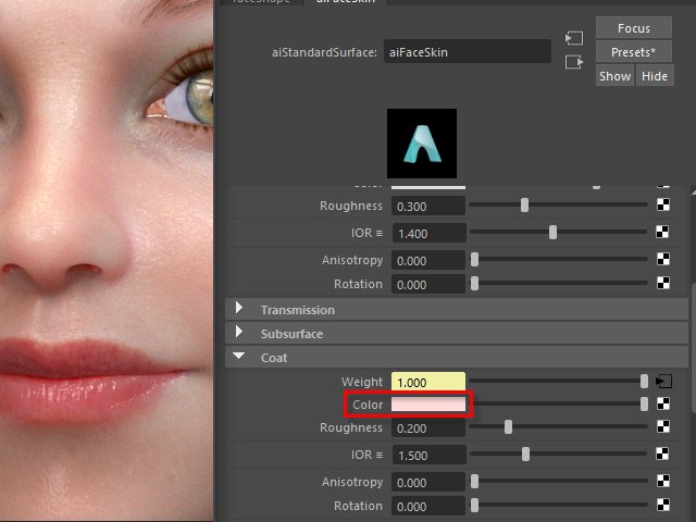 Scale up the AreaLight to reduce specular. AreaLight を大きくするとSpecular が抑えられます。 9. ![]() After applying the coat map, the lips look pale. コートマップを張り付けると唇が少し色あせた感じです。 10. ![]() ![]() I am going to apply little red on Color. Color に少し赤い色を入れます。 11. ![]() 12. ![]() |