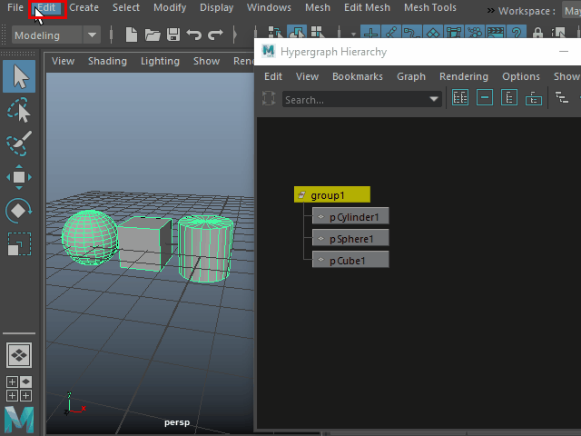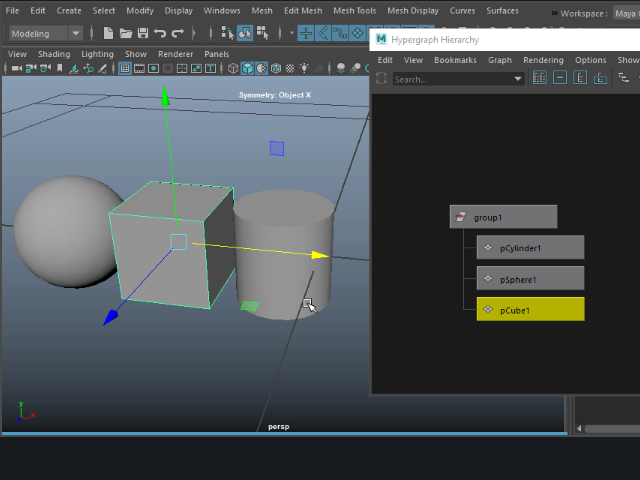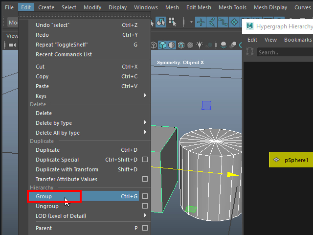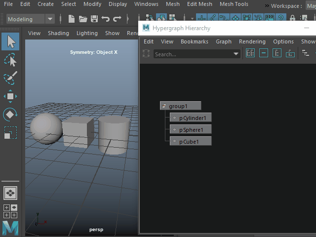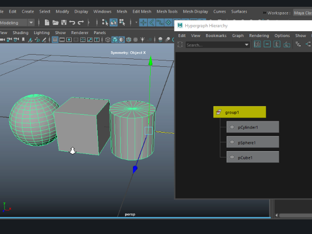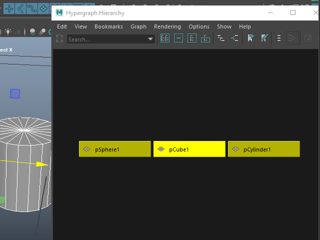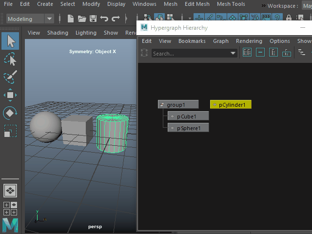 Group グループ化する 1. ![]() 複数のオブジェクトを一つにまとめてみます。 2. ![]() Hypergraph をオープンしてみます。 Windows > General Editors > Hypergraph: Hierarchy このようにオブジェクトが名札のように表示されます。これをオブジェクト ノードといいます。 3. ![]() Group でグループ化します。 4. ![]() このようにオブジェクトが一つに束ねられたような状態になります。 一番上のgroup1 のノードを選択すると、まとめて回転させたり、スケールを変えたりする場合に便利です。 5. ![]() このように各パーツを選択することも可能です。 6. ![]() 分解して元に戻すにはUngroup を適用します。 7. ![]() このようにマウスの中央ボタンでグループから切り離すこともできます。 8. ![]() グループに入れる場合はマウスの中央ボタンでドラッグします。 |