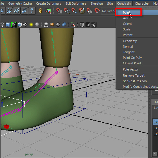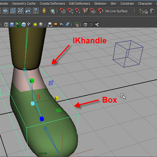 Now I am going to constrain the IKhandle to the box. Always use Point Constrain to attach the IKhandle.