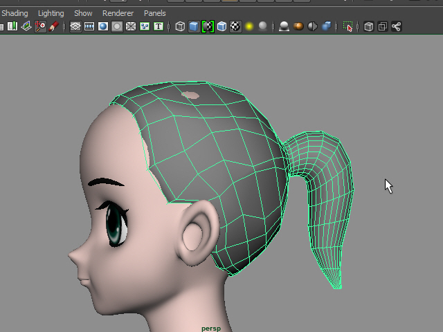 3. In this example, hair on the head and the pony tails are connected. However, you don't need to connect the hair on the head and the pony tail.