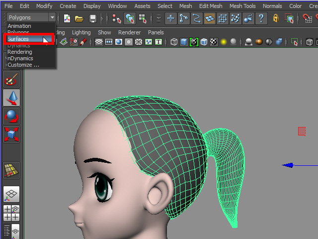 2. Change to Surface mode in 2015 version. In 2016 version, change to Modeling mode.