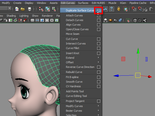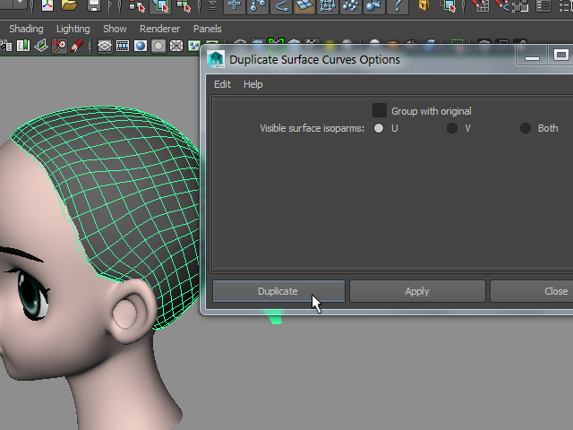3. Now I am going to duplicate curves from the surface. In Maya 2016, Curves > Duplicate Surface Curves > option box