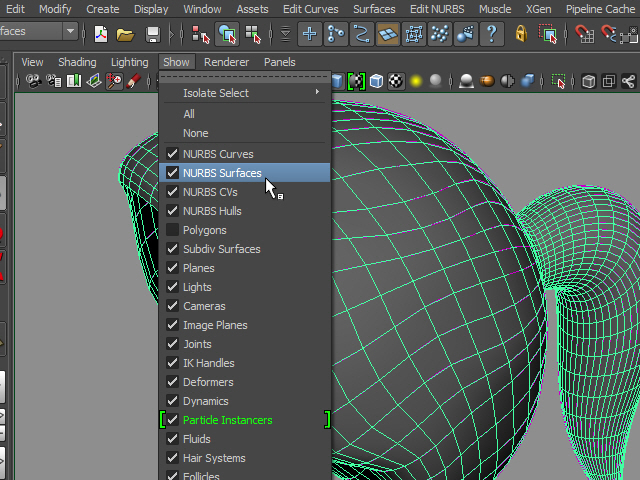 7. Also, I am going to hide NURBS surfaces.
