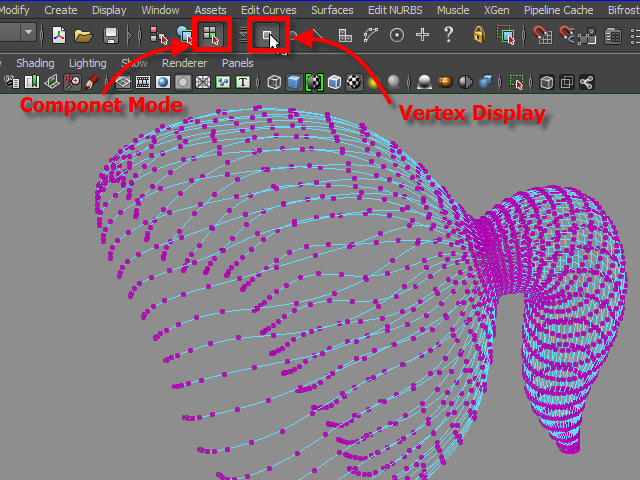 9. I have to check the direction of curves. Go to Component Mode and display Vertices.