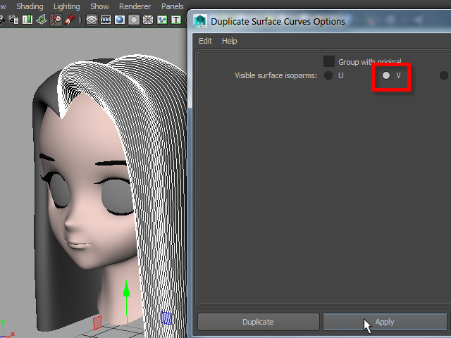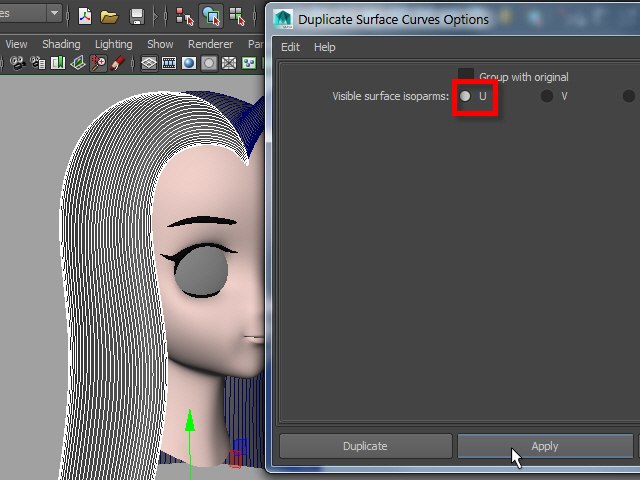 14. Extrude curves from the other side of the face. In this case, V direction doesn't work.