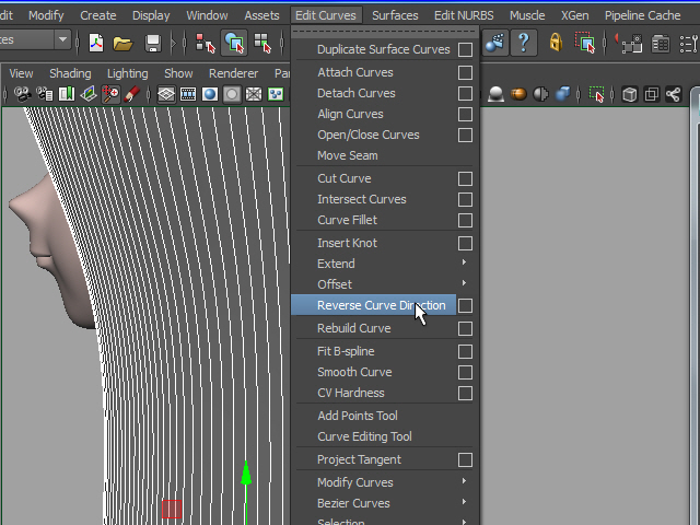 11. To check the direction of curves, look at the end of the curve. If you see a little squre, it 's a starting point. The starting point should be on top of the head. In this case all curves need to reverse.